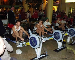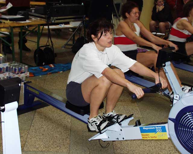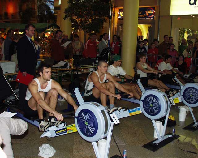 bei Linz (Plus-City). 20 Ruderergometer standen dicht nebeneinander in einem der vielen Gänge. Zuschauen konnte man nur,